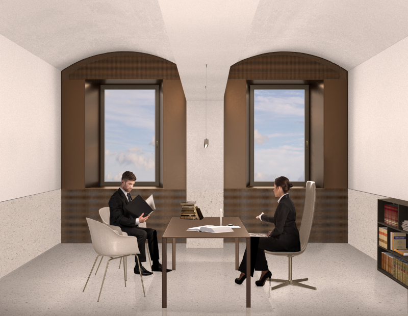 I tipici ballatoi saranno rinforzati con lame in acciaio e aumentati di dimensioni mediante l'inserimento di un nuovo cordolo in acciaio in continuità con i nuovi parapetti. La nuova infrastruttura Mep ridisegnerà la facciata interna degli uffici in continuità con i nuovi serramenti. Un sistema di contro-pareti metalliche è inserito nelle strutture esistenti per contenere, schermare e rendere ispezionabile tutto il sistema impiantistico. Una soluzione reversibile che rafforza il concetto di costruzione di un delicato, ma anche schietto, dialogo tra antico e nuovo. «Il gioco del progetto - concludono gli architetti - è quello di costruire un dialogo tra vecchio e nuovo, favorendo la bellezza dell'edificio originario con una nuova bellezza di dettagli ricercati, capaci di definire un incontro poetico tra tradizione e innovazione».