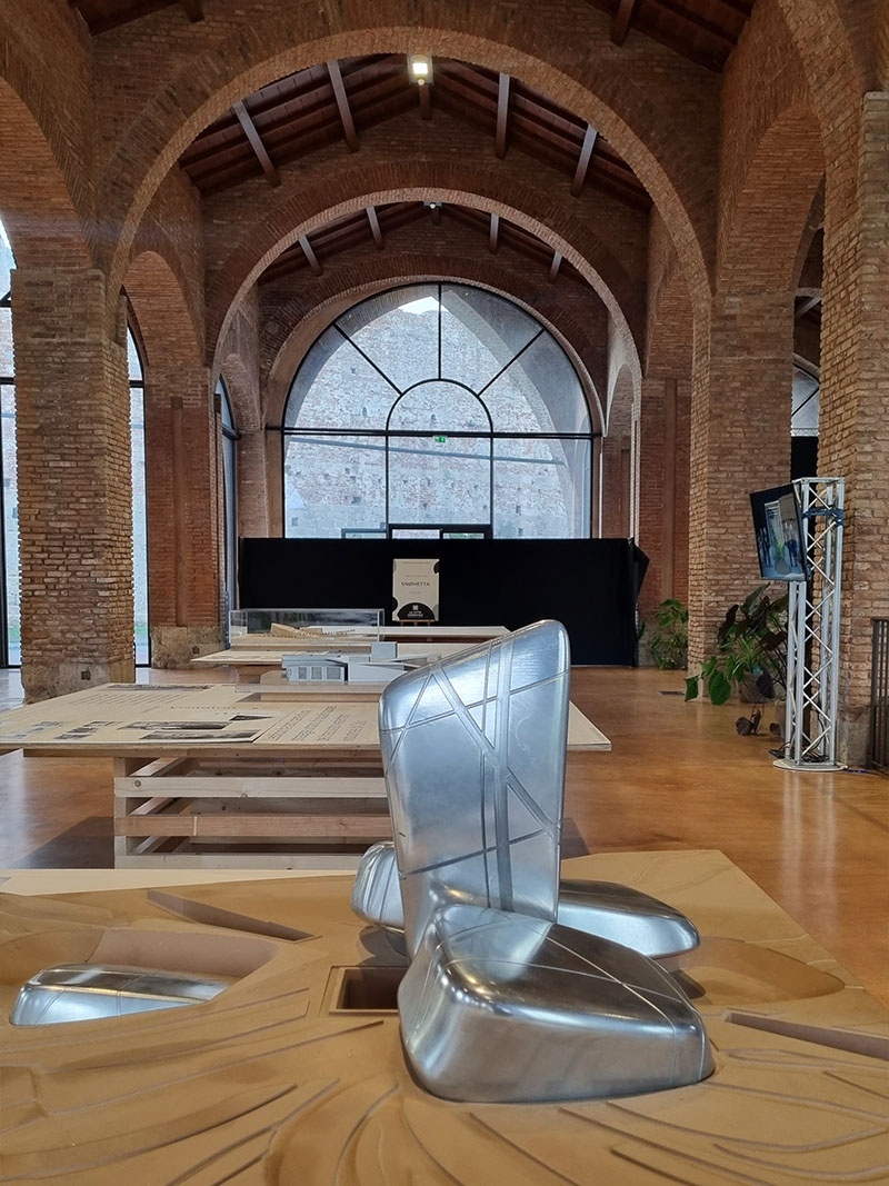 Allestimento Benedetta Tagliabue - EMBT Architects agli Arsenali Repubblicani - Biennale Architettura Pisa · photo © Giulia Mura