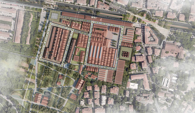 Partendo da questo asse principale, il complesso connetterà tutte le aree limitrofe, dal centro storico al sistema dei Colli, fino ai Giardini Margherita e all'Ospedale Rizzoli, con una configurazione flessibile che ammette, sin da ora, nuovi possibili sviluppi per la Bologna del futuro.