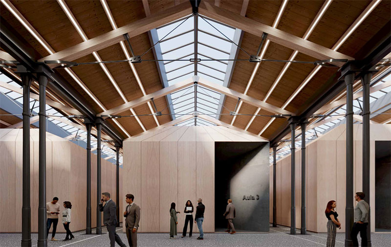 Nel rispetto del patrimonio architettonico, infatti, il progetto prevede la realizzazione di "scatole" in legno e metallo che seguiranno l'andamento delle capriate originarie e l'inserimento di lucernari per favorire l'illuminazione naturale e la corretta gestione energetica del complesso.