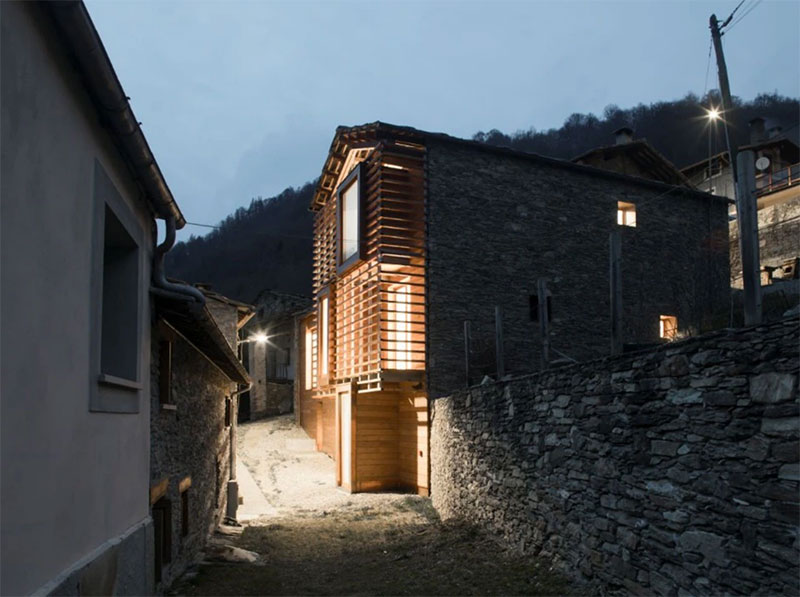 L'antico fienile della seconda metà dell'Ottocento in stato d'abbandono, con la riqualificazione rappresenta il primo esempio in Italia di una classificazione energetica B in un edificio sito in centro storico, mantenendo la preesistenza in pietra locale.