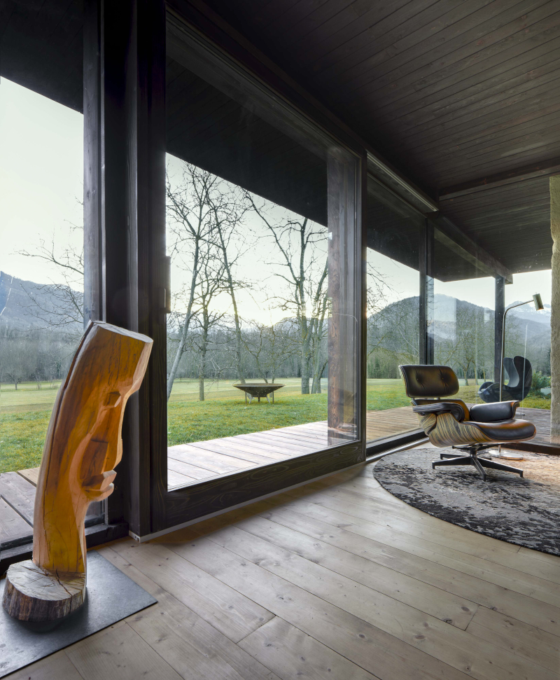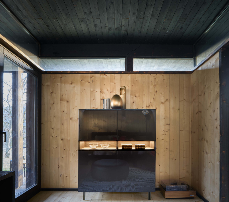 Un rudere abbandonato conquistato dai rovi, immerso nella natura del bosco, diventa una casa-rifugio grazie alla valorizzazione dell'antico luogo di vita contadina e al moderno e misurato ampliamento che utilizza legno di larice bruciato e vetro per dar vita ad un'architettura in simbiosi con il paesaggio.