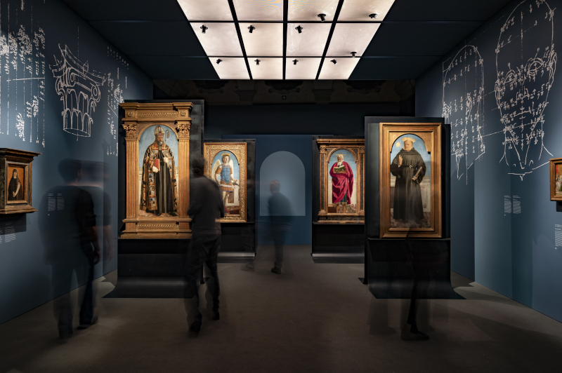 L'installazione di CRA e Italo Rota prova a immergere lo spettatore in un'esperienza unica: guardare il capolavoro riunito attraverso gli occhi di Piero della Francesca. Per farlo i progettisti hanno pensato di provare a «riprodurre l'atmosfera e le condizioni di luce dell'atelier toscano di Della Francesca», spiegano in una nota.