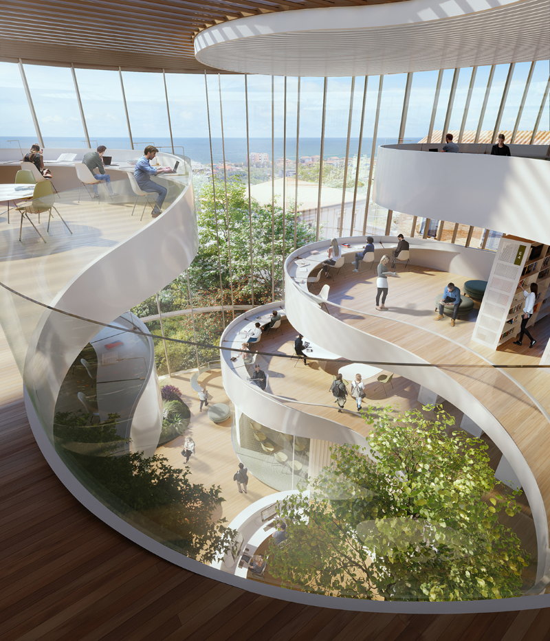 Il progetto del verde, file rouge tra i vari livelli e le terrazze, è pensato come spazio pubblico capace di valorizzare e ricucire il tessuto urbano al suo intorno, e vede il suo incipit nel giardino d'inverno al piano terra. Lo studio del clima ha accompagnato il progetto. L'ottimizzazione dell'esposizione della facciata principale del nuovo volume, verso nord-ovest, per proteggersi dalla radiazione solare diretta, dà vita a un'illuminazione naturale ottimale.