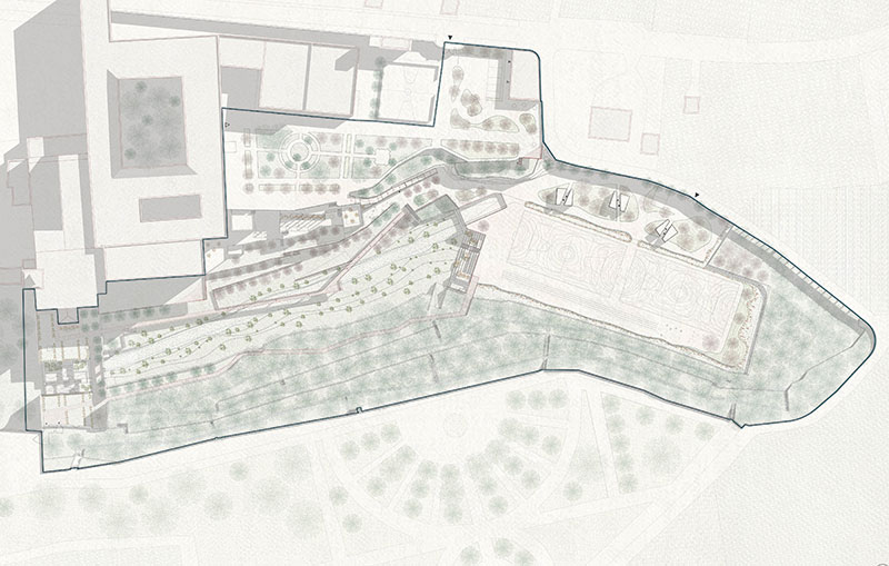 Il progetto si basa su azioni di sottrazione, implementazione ed integrazione degli elementi più forti, per dare vita a un paesaggio complesso, in grado di raccontare la sua storia aprendosi, allo stesso tempo, a funzioni didattiche e ludiche.