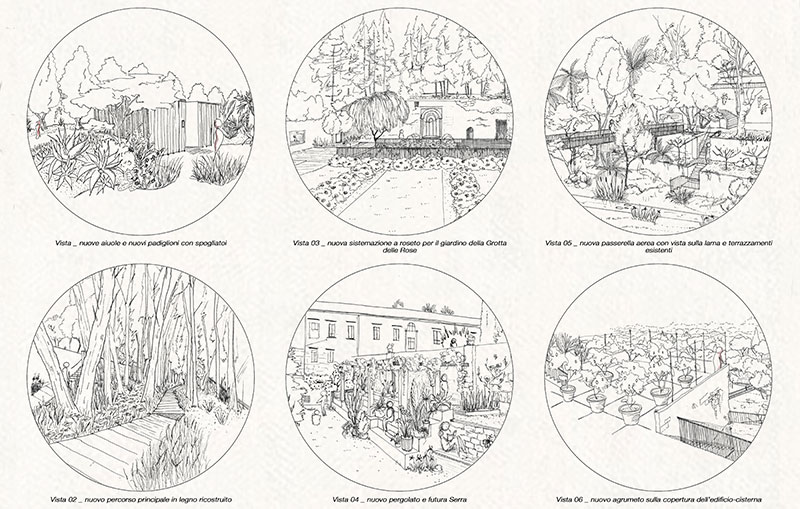 L'eliminazione di tutti i manufatti privi di valore o instabili, infatti, consente di restituire leggibilità agli elementi architettonici ed arborei più significativi, liberando al contempo viste insolite e superfici da destinare a nuove funzioni.