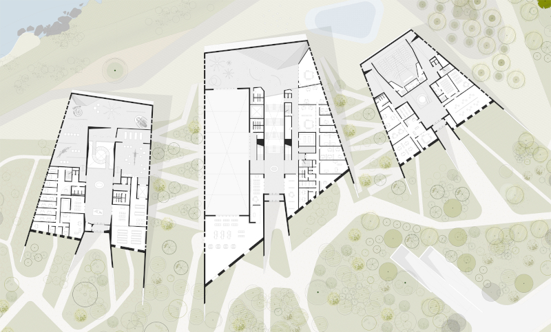 Il polo si compone di tre volumetrie distinte, ma tra loro connesse, che emergono dalle rive del fiume. Il distretto museale e il suo parco si propongono come un attrattore culturale. Il museo di arte contemporanea, quello di storia naturale e la casa dell'architettura offriranno esibizioni sia permanenti che temporanee, laboratori di ricerca e didattica, spazi meeting informali. Ci saranno, inoltre, un giardino botanico e, a completamento del lungofiume, un grande spazio esterno flessibile, dedicato agli eventi.