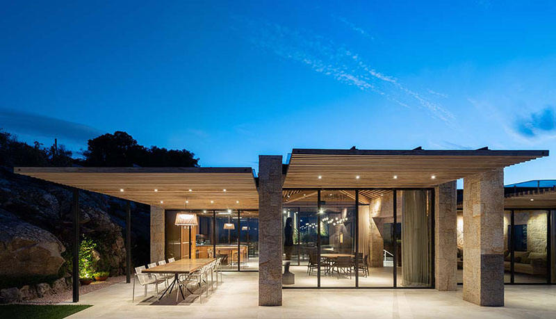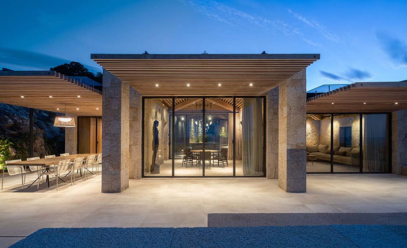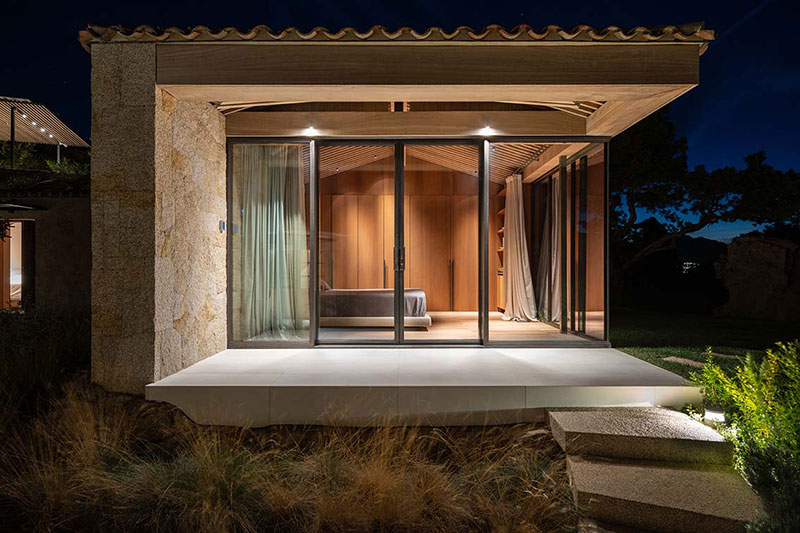 Dinnanzi a un lotto invaso dalla vegetazione e costruzioni sconnesse tra loro con vincoli paesaggistici importanti, come l'impossibilità di modificare la sagoma dei volumi esistenti, lo studio è così riuscito a creare un'architettura pulita e ragionata, caratterizzata da una sequenza di spazi aperti, chiusi e coperti, avvolti dalla macchia mediterranea e incastonati nel paesaggio collinare della Gallura.