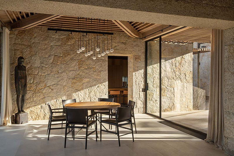 Un progetto guidato dal genius loci che offre un'esperienza spaziale e materica in cui architettura, natura, tradizione e artigianato si fondono e si confondono in un sistema organico che mostra sin da subito la sua dimensione domestica e accogliente.