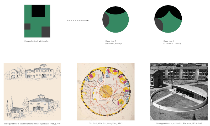I riferimenti: i casali e i progetti di Gio Ponti e Giuseppe Vaccaro. Immagini e composizione fotografica di C+S Architects