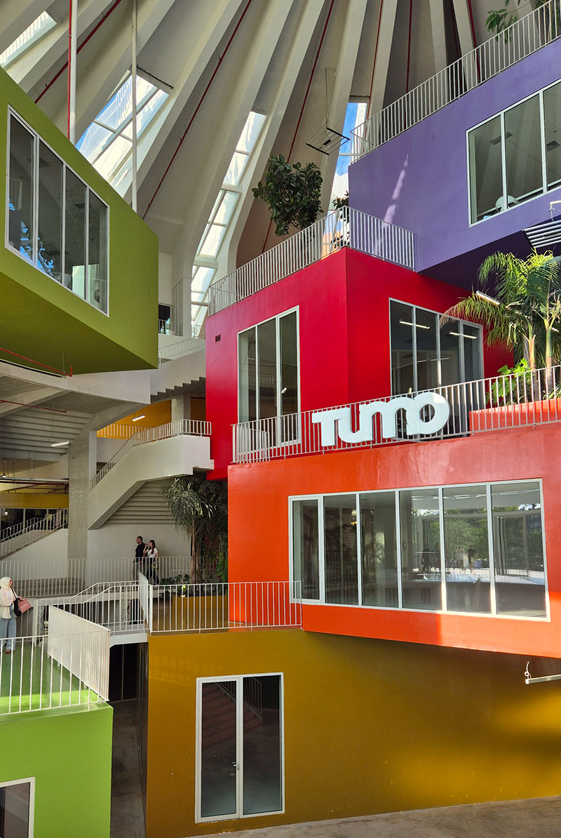 Fondata in Armenia nel 2011 e da allora diffusasi in tutta Europa, TUMO contribuisce a fornire formazione e opportunità contro la "fuga dei cervelli". L'altra metà delle scatole colorate è accessibile al pubblico con bar, ristoranti, uffici e laboratori per start-up, incubatori, spazi studio e altro ancora.