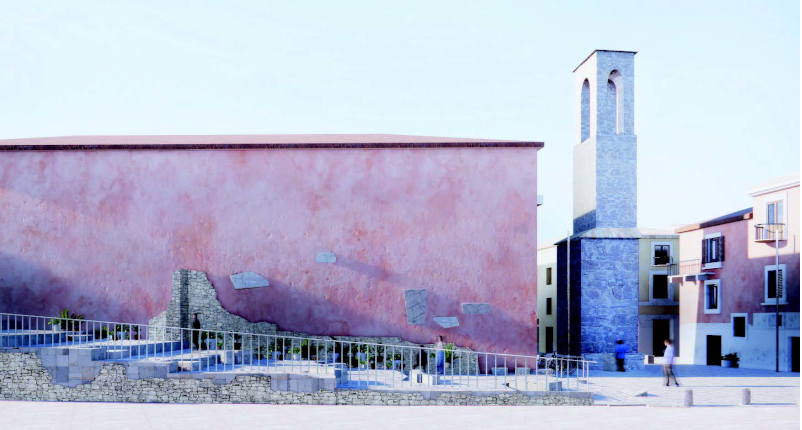 «Elementi chiave della chiesa, come l'altare e le nicchie, vengono integrati nel disegno della nuova struttura, apportando modifiche ai gradini stessi e modificando il segno a terra. Questo gesto architettonico - spiegano ancora i vincitori - si unisce a un'esperienza poetica in cui l'esperienza del visitatore è arricchita dal nesso storico insito nel disegno stesso. A seguito di queste logiche formali, l'incontro tra la "platea teatrale" e i ruderi della chiesa comporta ulteriori modifiche al disegno, introducendo spazi di aggregazione, riposo e meditazione».