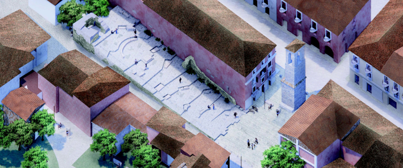 Il progetto consente la lettura del passato, conservandone le tracce. Nulla di nostalgico: l'intervento resta contemporaneo e punta alla vitalità dello spazio allo stesso tempo ripropone la scansione spaziale della Chiesa San Giovanni nelle gradinate, cercando un legame tra il passato e il presente.