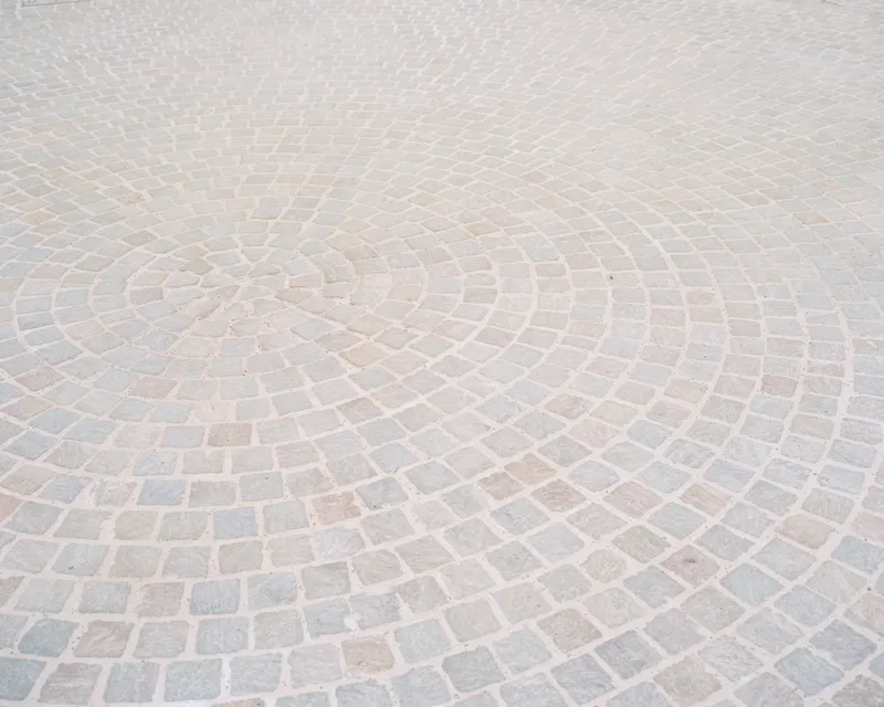 Pavimento: porfido con giunti in cemento e giunti in resina drenante