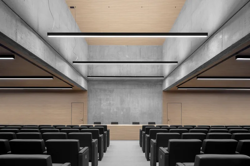 Con linee pulite e colori neutri, i laboratori si inseriscono nel complesso storico - vagamente neoclassico - sviluppandosi prevalentemente in ipogeo, così da ottenere migliori condizioni per gli esperimenti grazie alla minore quantità di luce, suoni e campi magnetici che potrebbero interferire con le attrezzature tecniche.