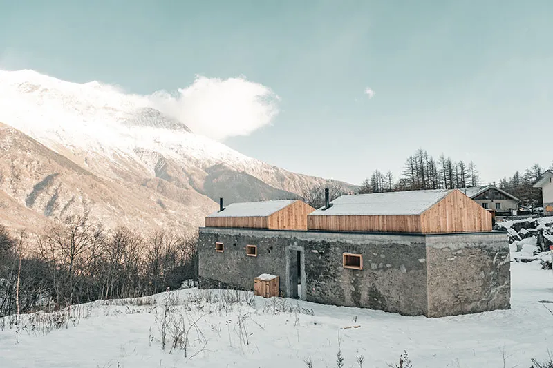 Due storie che si intrecciano: quella di una struttura storica con un'identità da conservare e valorizzare e quella di una nuova generazione, che ha deciso di restare. Si mostra come un "paese nel paese", rispetta il contesto del piccolo centro di montagna ma palesa il suo carattere contemporaneo con forme archetipiche e decise.
