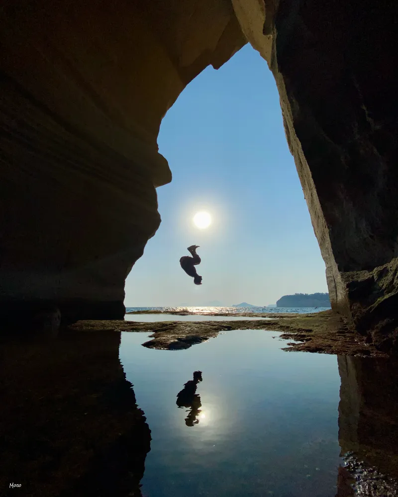 La discesa a mare, attraverso le grotte romane, giunge fino a una piscina di acqua naturale con attracco privato, che permette di raggiungere la villa direttamente dal mare.