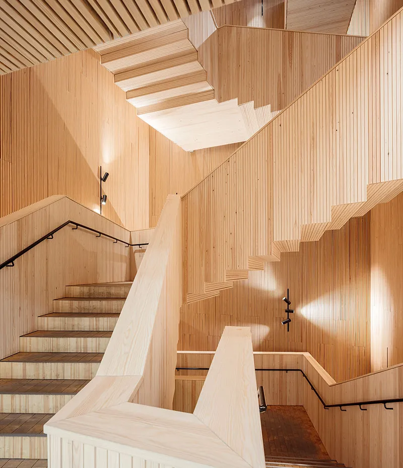 Sempre più spesso, infatti, gli architetti finlandesi scelgono di utilizzare il legno, sia per le strutture che per i rivestimenti, contribuendo così a ridurre le emissioni di carbonio e l'impatto sull'ambiente.