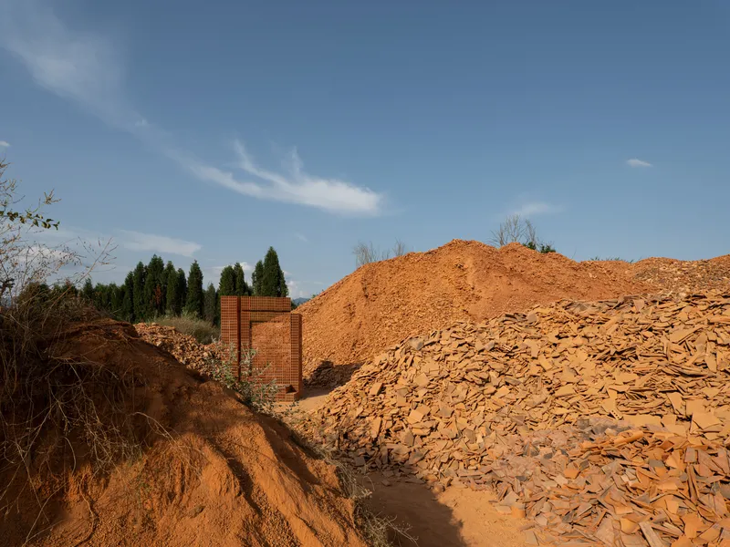 L'opera si colloca tra due diverse cave di materiali: una è naturale, di argilla; l'altra è di natura umana, costituita da grandi frammenti di materia che si ergono come montagne, svelando scenari in cui la rovina è essa stessa paesaggio.