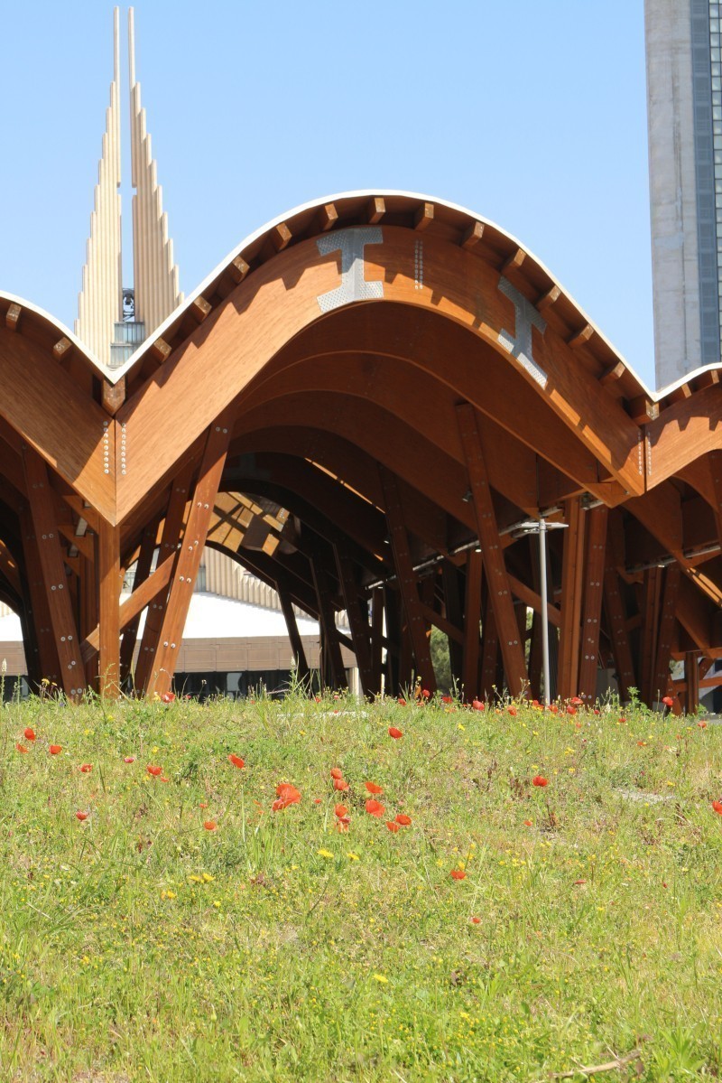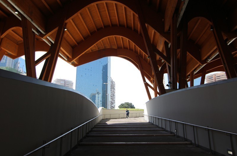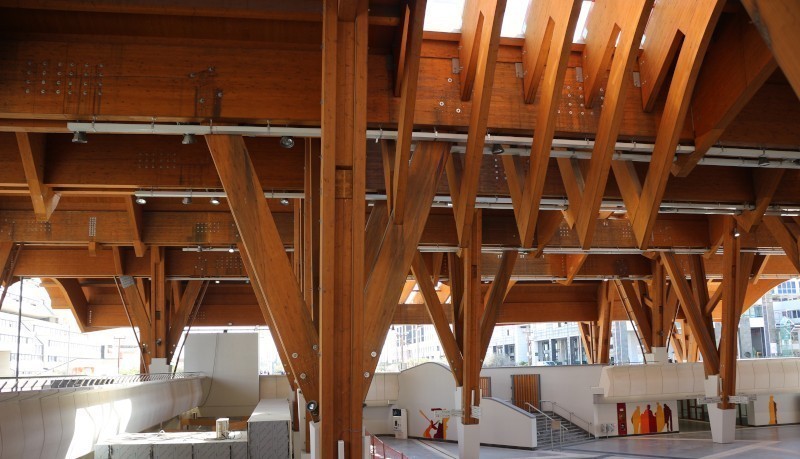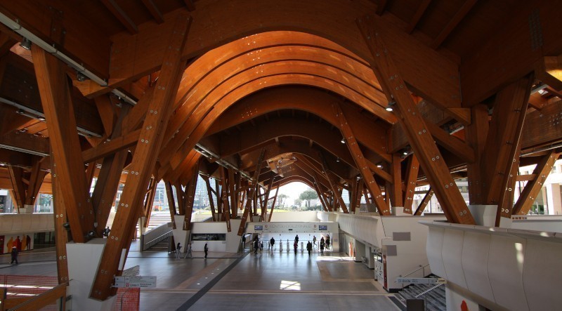 L'idea delle volte reinterpretate con le sinuosità del legno sono un omaggio alle grandi stazioni; mentre i molteplici sostegni obliqui e confluenti nei pilastri in cemento armato nascono anche dall'intenzione di ricreare la sensazione di passeggiare in un bosco.