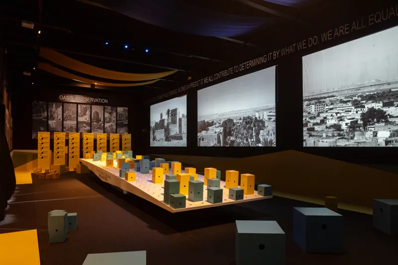 Il visitatore, in questo scenario, deve posizionare i blocchi in una sorta di vassoio sospeso, cercando di trovare l'equilibrio visivo e concettuale e trasformando queste azioni in consapevolezza e immaginazione verso un futuro sostenibile.