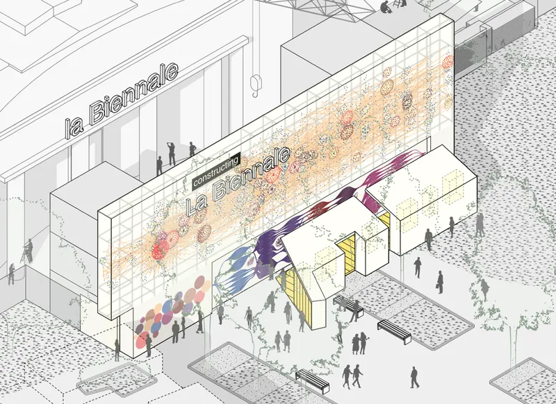 Seguendo il lavoro del team di lavoro e utilizzando sia big-data che strumenti etnografici, l'allestimento temporaneo dal titolo "Constructing La Biennale" prevede una controfacciata che accoglie i visitatori con una nuvola di punti larga 30 metri, tracciandone la storia dal 1974 al 2023.