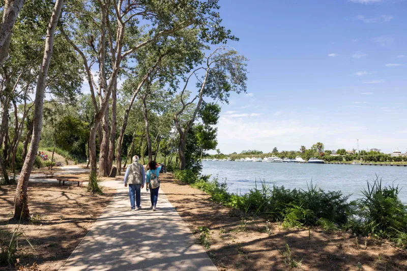 L'area è raggiungibile sia percorrendo Via Gherardo, ma anche usufruendo del pontile all'interno del parco, completamente riqualificato, che da oggi consente l'attracco dei battelli. I visitatori potranno immergersi nella natura percorrendo il nuovo percorso ciclopedonale ad anello di oltre 700 metri, arricchito da punti di sosta panoramici.