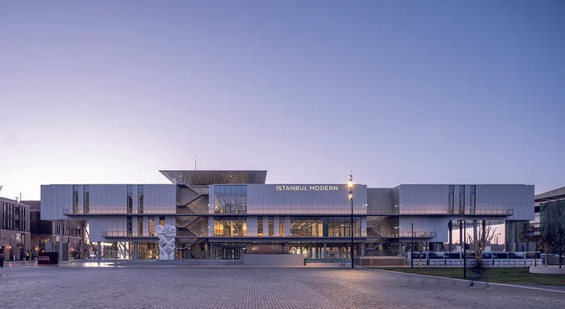 Posizionato sul lungomare di Karaköy, tra il Bosforo e il Corno d'Oro, l'Istanbul Modern, progettato da Renzo Piano si configura come un volume rettangolare sospeso tra le acque scintillanti e i riflessi di luce. La facciata in alluminio 3D crea, infatti, un dialogo visivo tra mare e parco, mentre una piscina sul tetto riflette il paesaggio urbano.