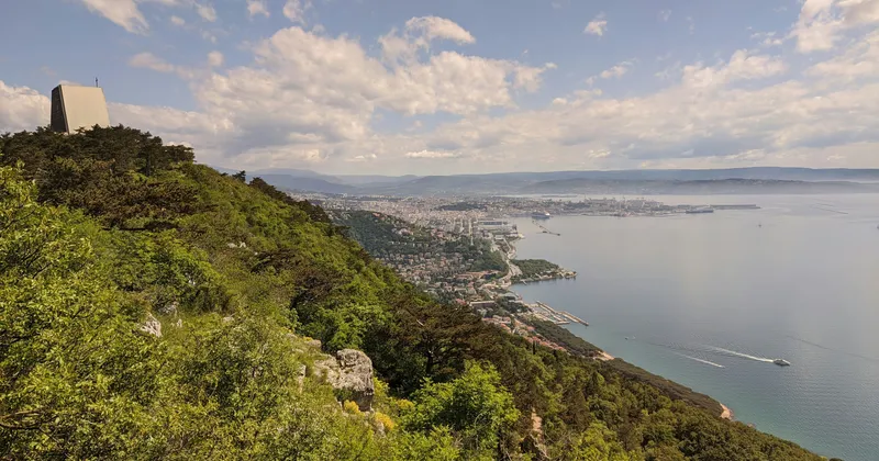Questo itinerario attraversa il cuore del centro e spinge lo sguardo fino a due luoghi simbolo: il Castello di Miramare, immerso in un parco affacciato sul Golfo, e il Santuario di Monte Grisa, landmark brutalista che veglia sulla città dall'alto.