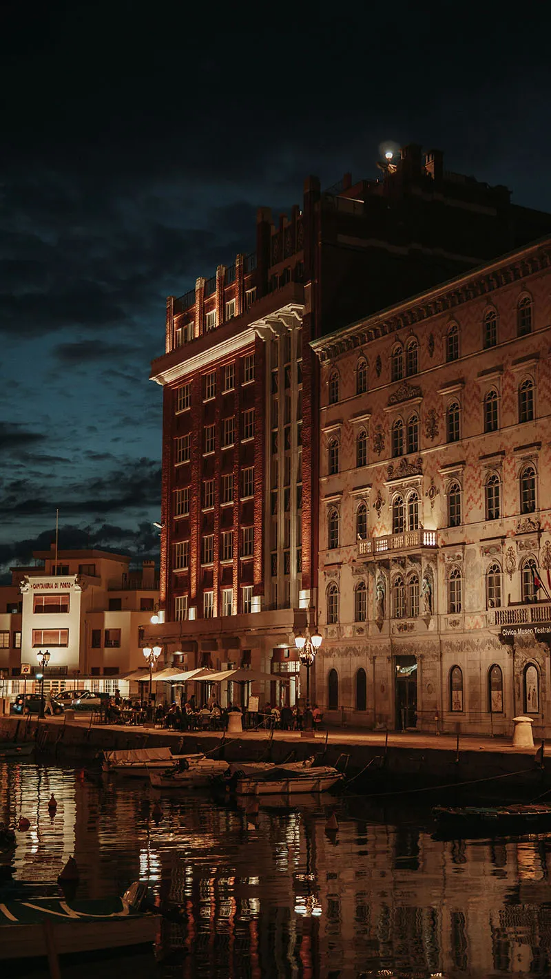 Il Canal Grande attraversa l'asse centrale come un frammento di mare che penetra nella città. Un tempo le imbarcazioni arrivavano fin qui per scaricare le merci nei magazzini; oggi il canale è una passeggiata urbana, dove i riflessi dell'acqua si mescolano alle facciate storiche e ai caffè che lo costeggiano.