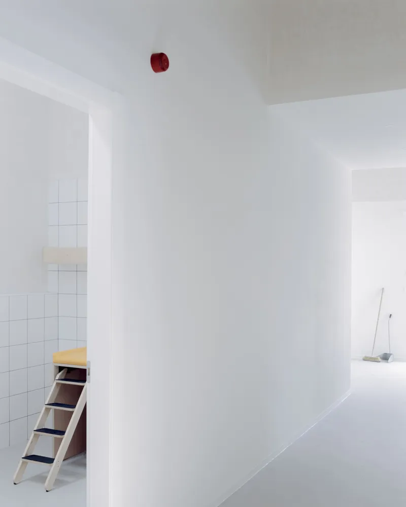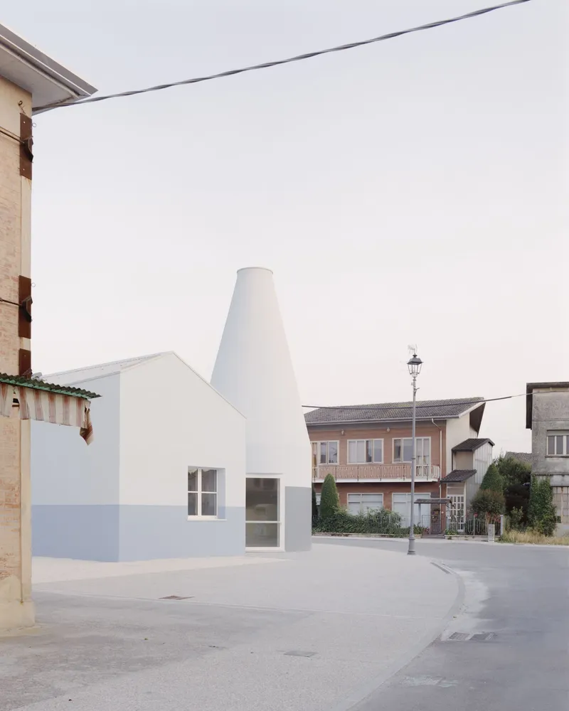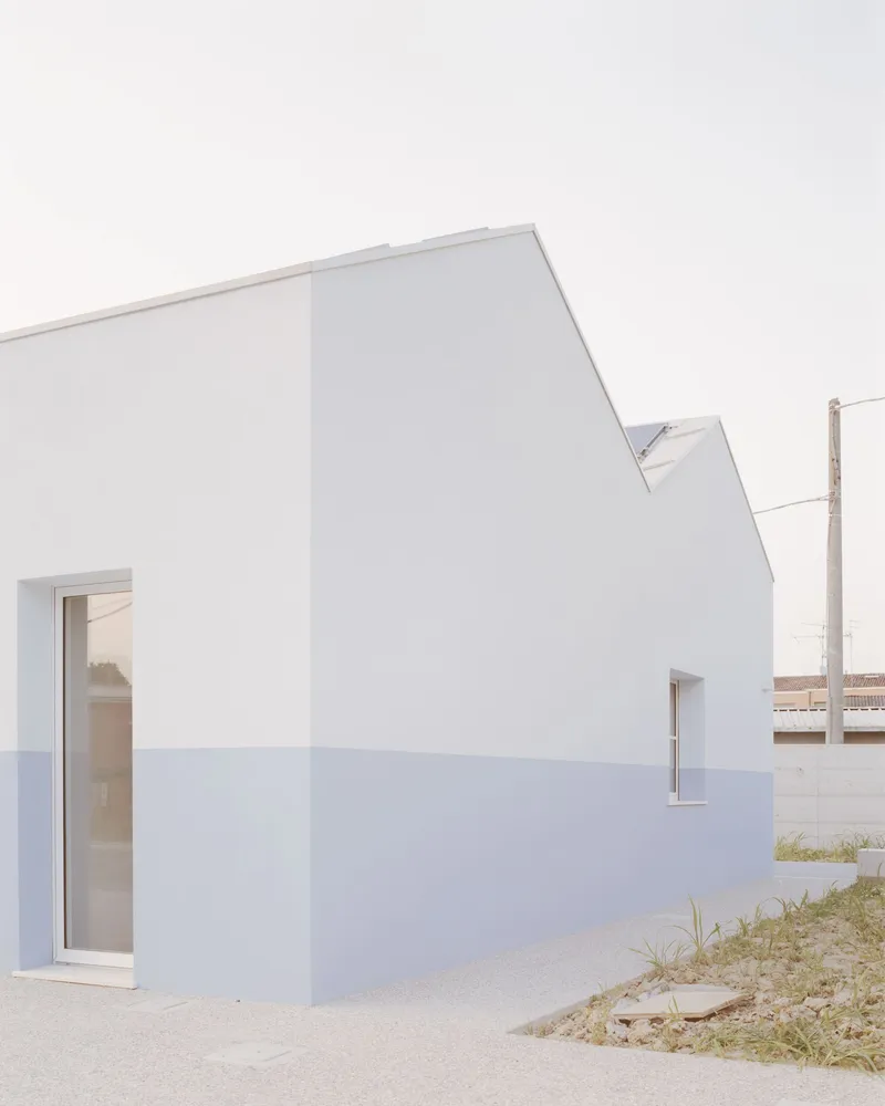 Rafforzati dalla scelta di colori tenui, i volumi così semplici definiscono un'immagine fiabesca dell'edificio.