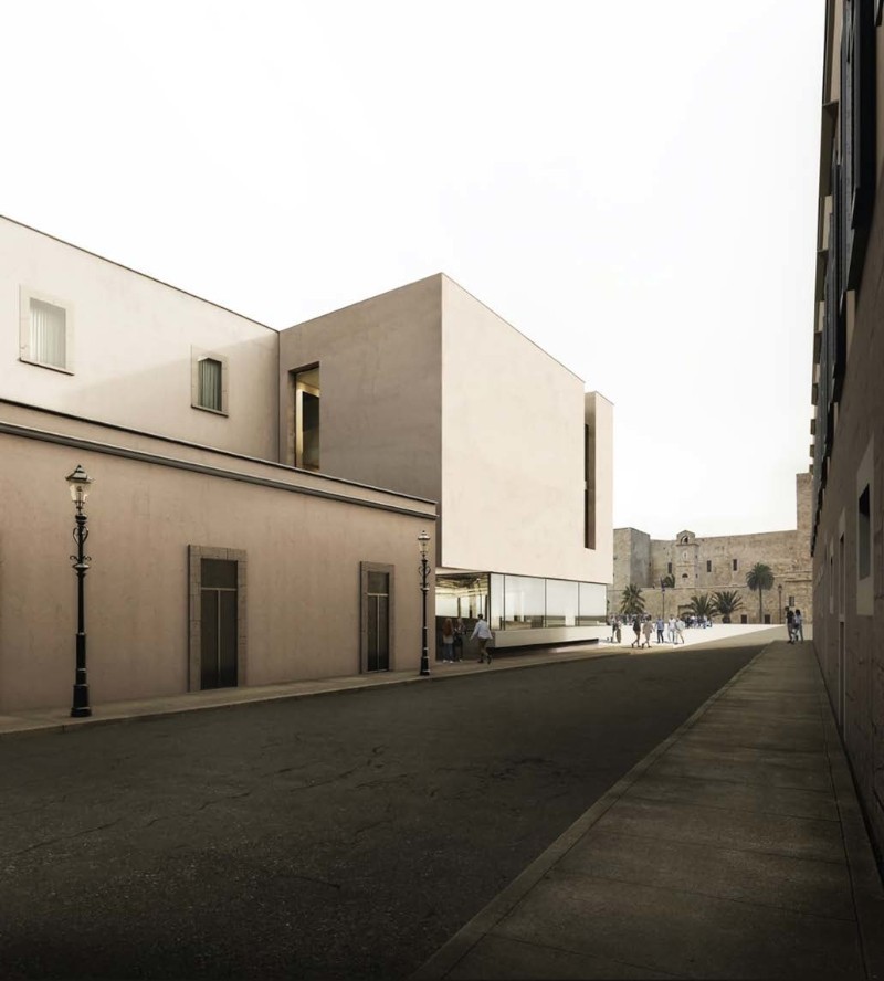 Il riferimento è al progetto per la trasformazione dello storico Palazzo Carcano a Trani in sede degli uffici giudiziari. Un recupero storico e architettonico che prevede anche l'ampliamento con un nuovo volume contemporaneo, in un contesto fortemente storicizzato, nonché la valorizzazione delle emergenze archeologiche.