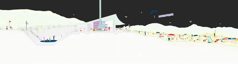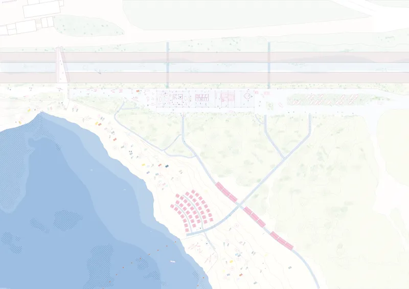 L'intervento ruota, infatti, attorno alla gestione della stagionalità, che trova espressione attraverso l'introduzione di dispositivi mobili e adattabili, "petit objets" che mutano funzione e forma seguendo le diverse esigenze delle stagioni, rendendo l'uso della spiaggia flessibile e modulare.
