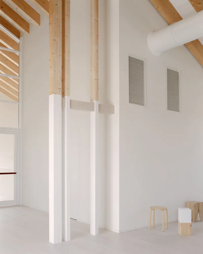 L'intera struttura del centro per famiglie è stata realizzata con telaio in legno, in linea con gli obiettivi fissati dai fondi Pnrr.
