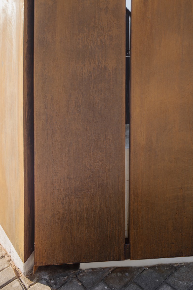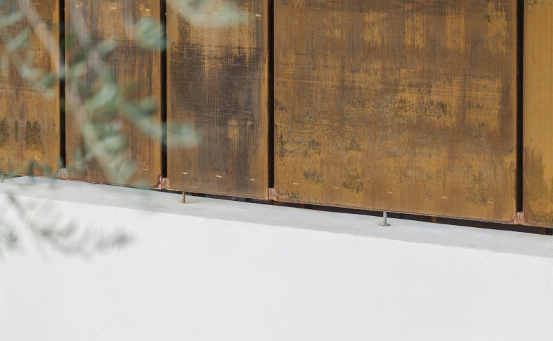 «Il corten - materiale vivo, come ricordava Richard Serra, che muta nel tempo e dialoga con i colori della terra, dei campi e degli ulivi - conferisce al luogo una dimensione poetica. La sua ossidazione non è degrado ma maturazione, un processo che lega indissolubilmente l'opera al paesaggio, con variazioni cromatiche che richiamano il rosso dei fiori primaverili, l'ocra del grano, il verde delle chiome e il marrone della terra nuda».