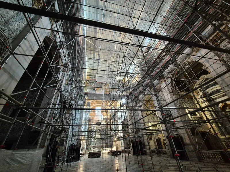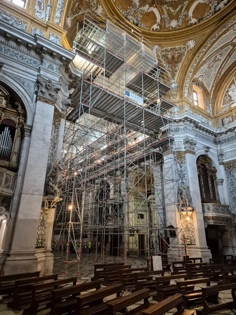 Impalcato Layher che permette il restauro dei decori sulla volta della chiesa dei Gesuiti