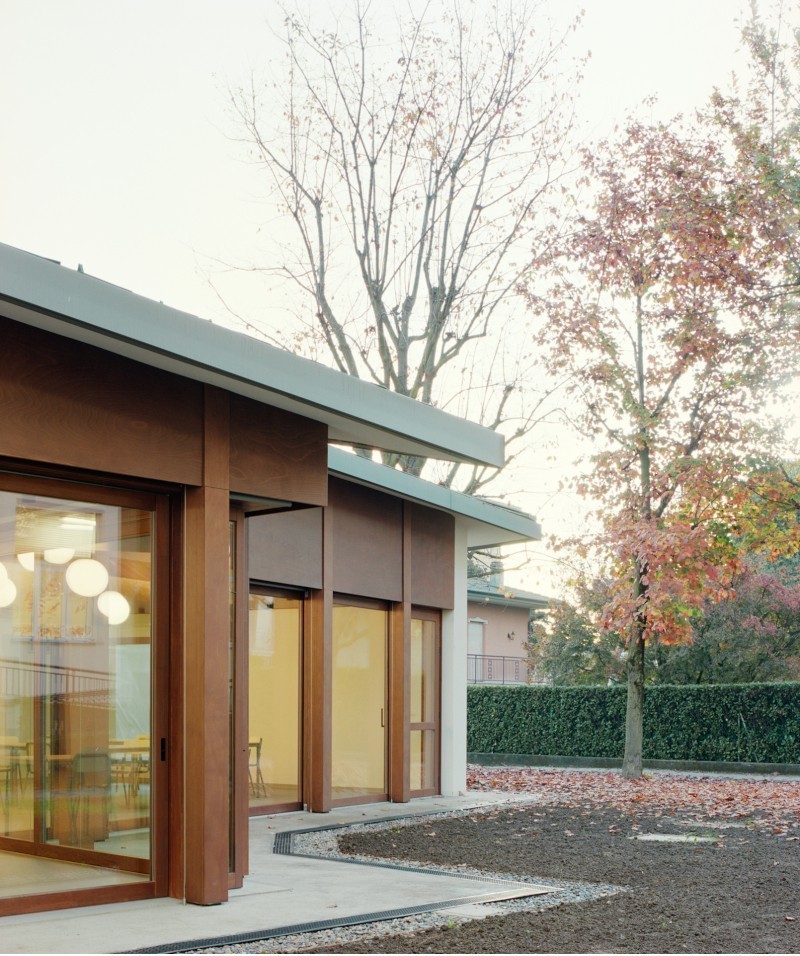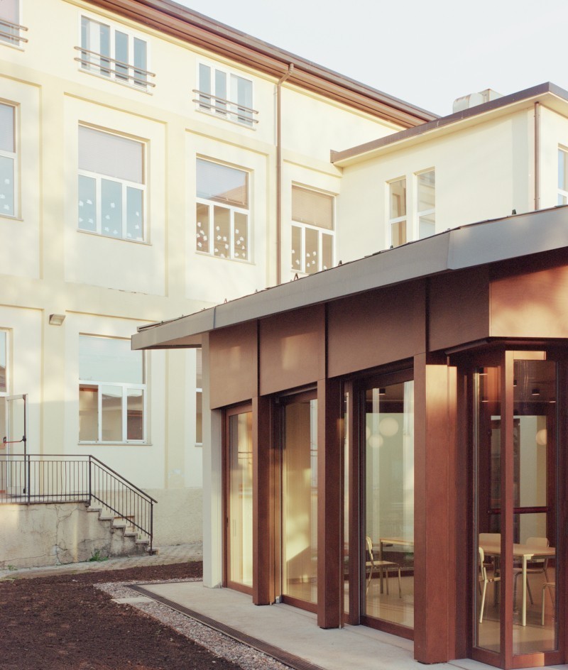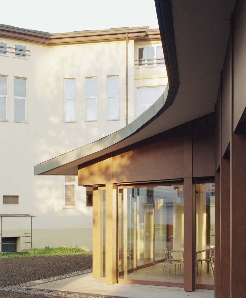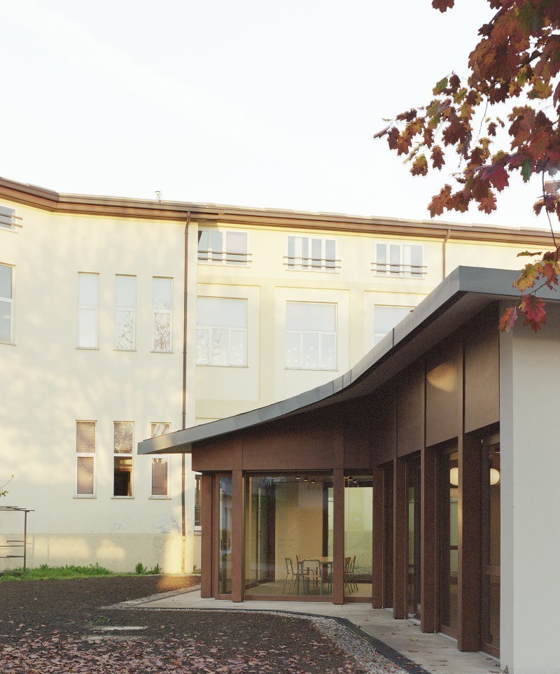Uno spazio contemporaneo e radicato nel suo contesto, pensato come un'occasione per ridefinire il rapporto tra la scuola e il suo giardino che rappresenta - affermano i titolari dello studio, Emauele Colombo e Paolo Molteni - «un unicum identitario insieme al corpo principale».