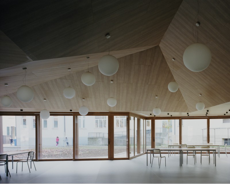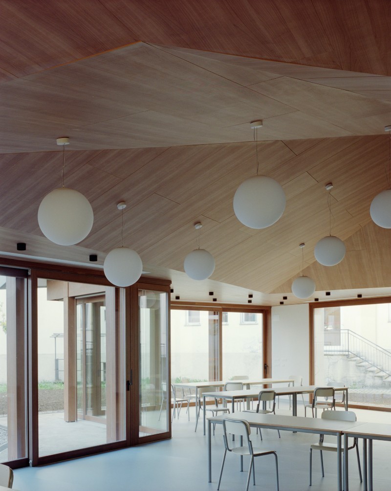 Dopo la palestra realizzata al posto di un vecchio bocciodromo, a Lurate Caccivio (Como) lo studio Colombo/Molteni Larchs Architettura con Alessandro Gaffuri termina un'altra opera: la mensa della scuola primaria.