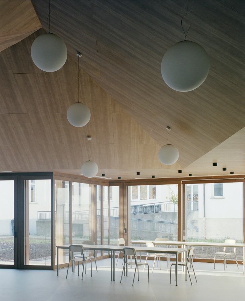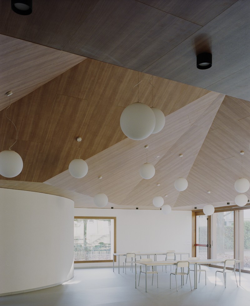 «Il momento del pasto diventa esperienza collettiva e inclusiva, arricchita dalla luce naturale, dai colori delle stagioni, dalla percezione diretta della natura che circonda i bambini», affermano gli architetti in una nota.