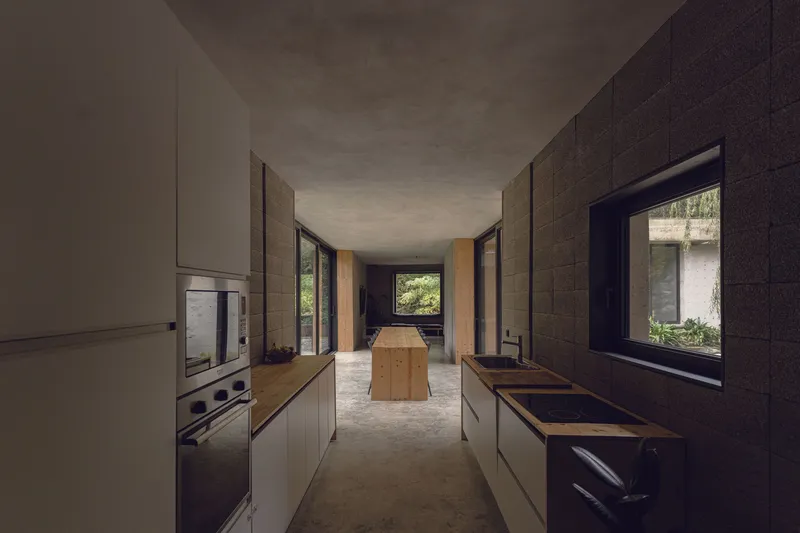 La Narrow House sorge sulle rovine di un garage e di un pollaio abbandonato, sopra un ruscello, nata con il vero spirito di riuso. L'aumento volumetrico concesso ha permesso di unire i due volumi preesistenti e, non modificandone la sagoma, di dar vita a un susseguirsi di spazi che cambiano di continuo natura e funzione. L'architetto ha ottimizzato le risorse a disposizione generando un dispositivo i cui protagonisti sono il ruscello, la brezza della valle, la luce che entra nel volume in modo naturale.