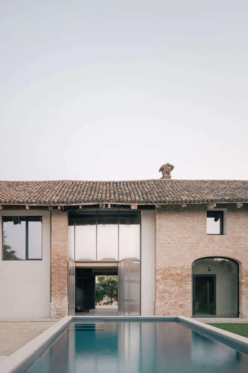 L'intervento trasforma l'ex deposito agricolo in spazi abitativi, valorizzando materiali naturali e conservando il fascino storico del luogo.