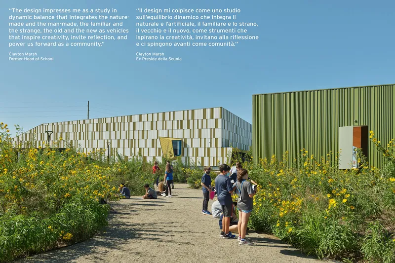 La Thaden School offre un nuovo tipo di campus, concepito come un'aula estesa per un programma basato sul "learning by doing". Questo campus "urbano pastorale" crea una connessione fra studenti, natura e comunità, tessendo una rete di edifici e spazi esterni che offrono supporto allo specifico modello pedagogico della scuola.