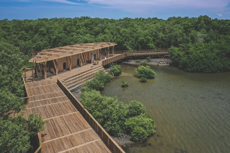 L'Ecoparque Ciénaga de Mallorquín, mostra un sistema modulare di percorsi, che crea una barriera vivente tra l'ecosistema delle mangrovie e l'espansione urbana, favorendo una relazione dinamica tra natura e città.