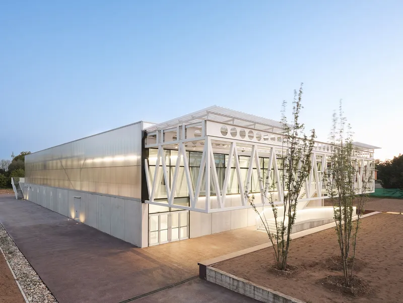L'edificio è allo stesso tempo uno spazio espositivo, di formazione, di sperimentazione e con una vocazione urbana, un prototipo che utilizza forma, materiali e combinazioni spaziali per rispondere alle condizioni straordinarie del luogo.