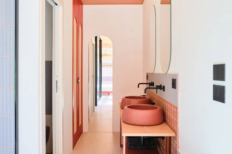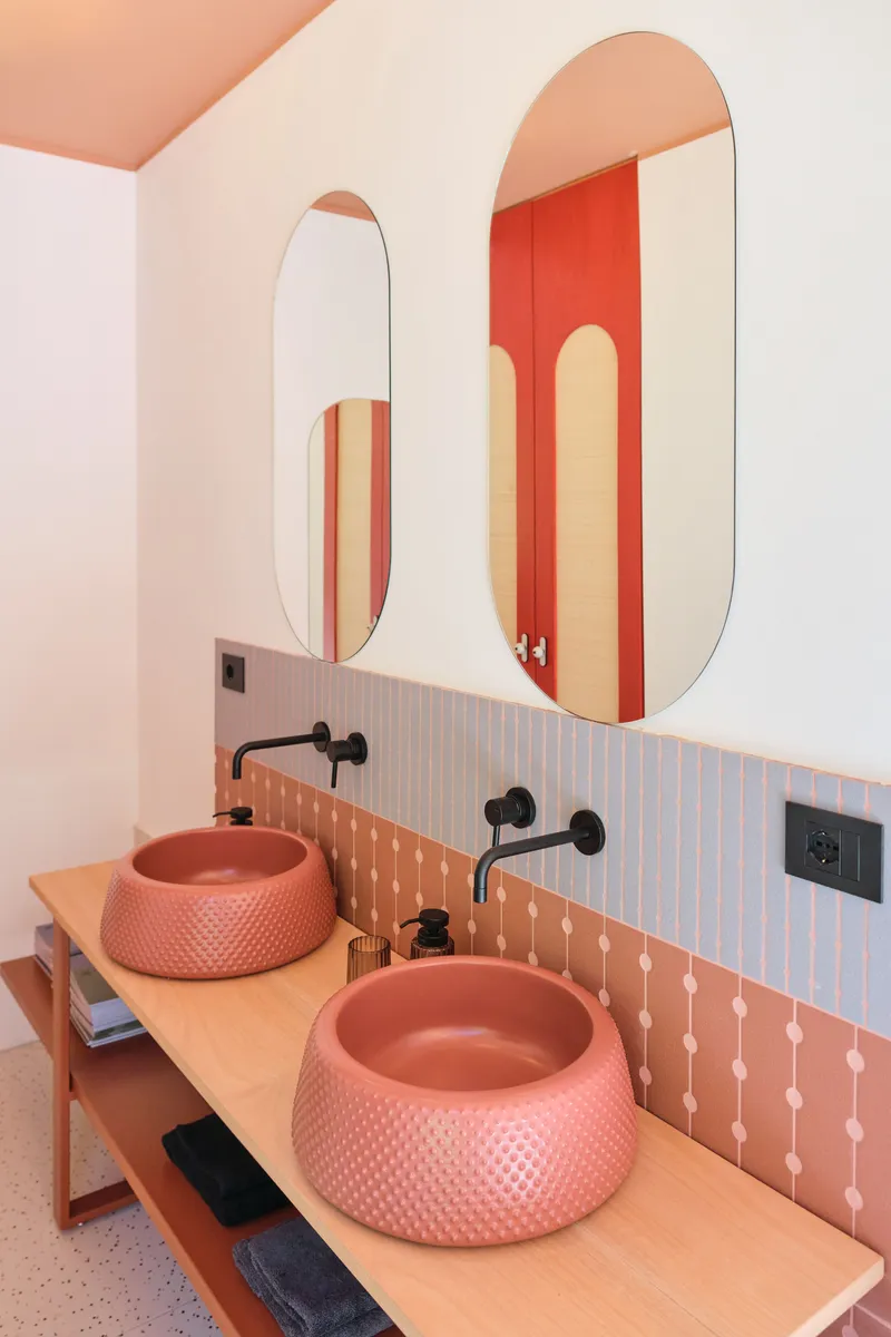 Anche le scelte dei colori trovano ispirazione dal sud Italia, riconoscibile per tinte vivaci che rimandano alle celebri ceramiche e facciate scolorite dal sole. Qui il colore viene desaturato, come se volesse tendere alla tonalità pastello per adattarsi meglio al contesto contemporaneo, più sofisticato, forte e riconoscibile ma lontano dal citazionismo.