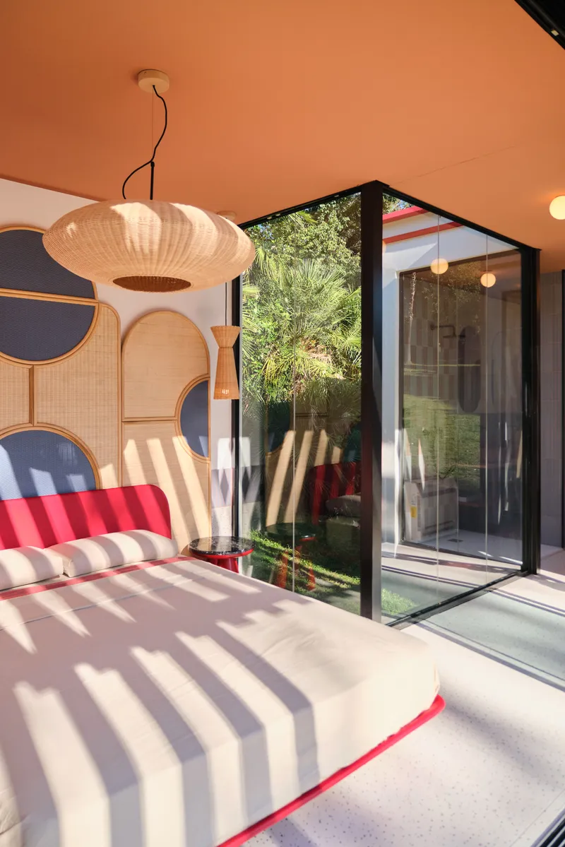 Il modulo abitativo trova la sua configurazione perfetta grazie all'inserimento di alcuni complementi d'arredo e arredi a parete realizzati in vimini e midollino, materiali leggeri e intrecciati a mano, legati alla tradizione artigianale del Sud Italia, un richiamo diretto all'universo mediterraneo, che aggiunge calore e una dimensione tattile al progetto, rafforzando il carattere autentico e locale.