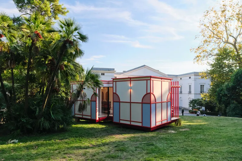In linea con la sua ricerca, che fa di colori e geometrie minimali il segno distintivo, Elena Salmistraro scompone l'intero volume secondo la logica tripartita - basamento, corpo e copertura - tipica dell'architettura mediterranea.