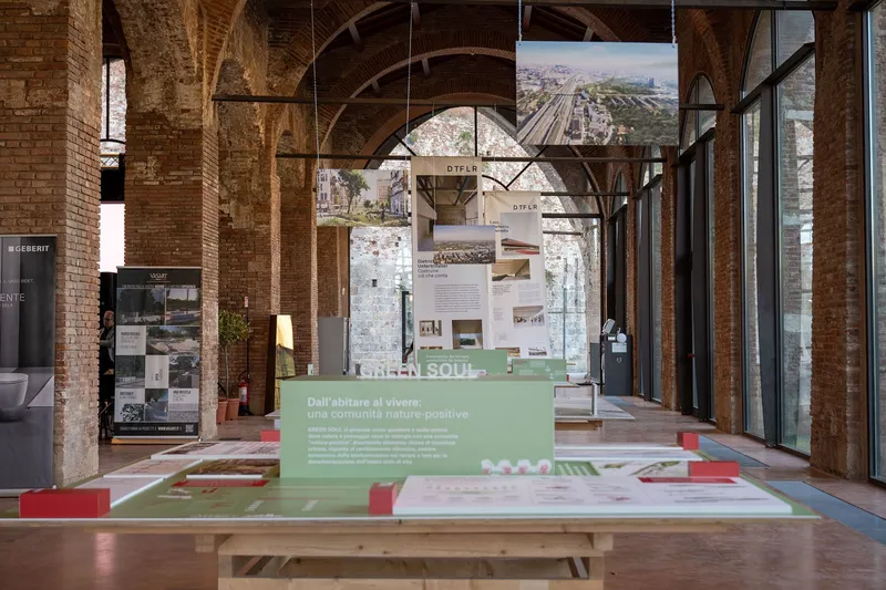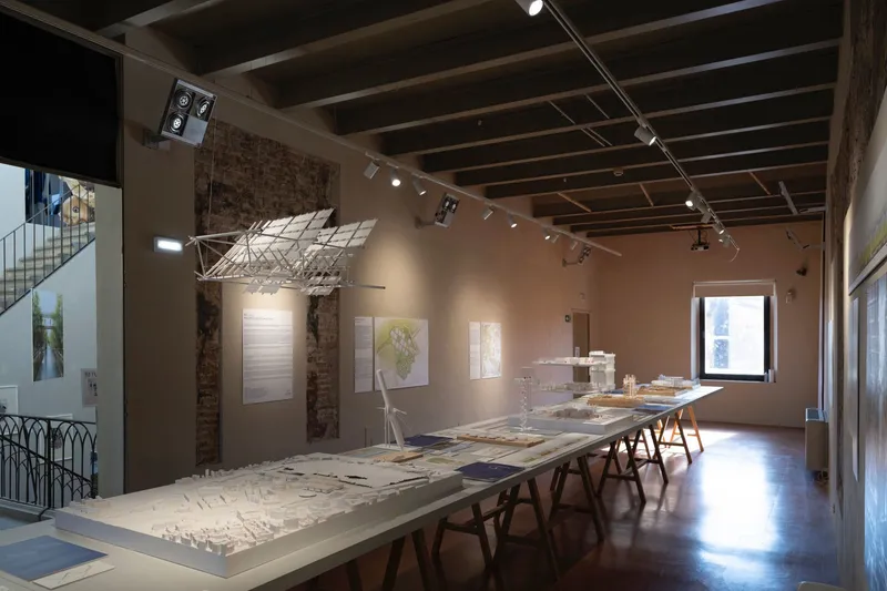 Semplice ma ragionato e a tratti poetico il set up proposto dallo studio cinese Fu Yngbin Studio, l'unico che ha incluso plastici e materiali. Segue il lavoro un po' accademico seppur efficace dei landscape architects LAND, lo studio fondato da Andreas Kipar, che porta alla Biennale di Architettura di Pisa 2025 tre progetti che raccontano la natura come infrastruttura del futuro. Un percorso che unisce ecologia, innovazione e rigenerazione urbana.