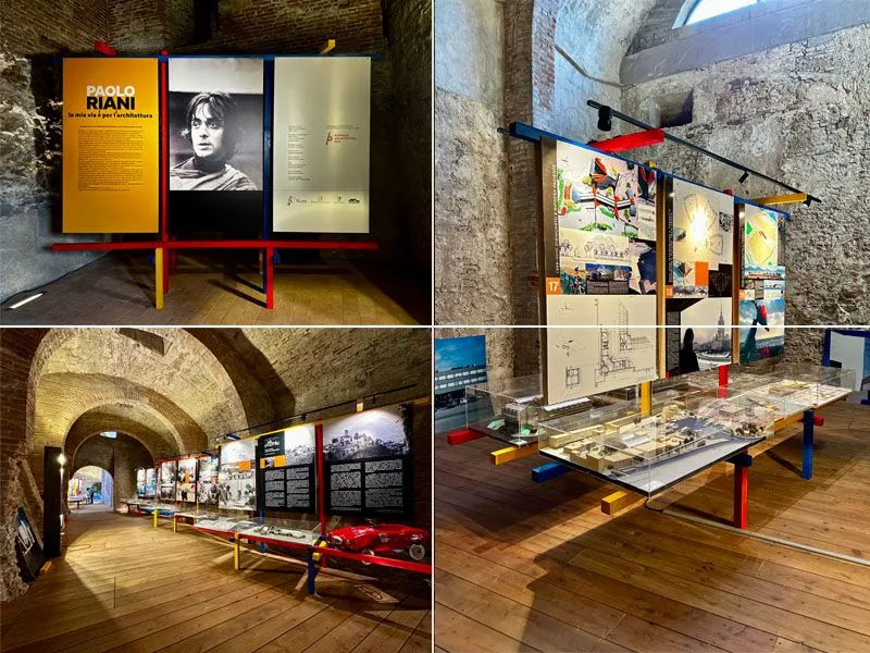 E infine al toscano Paolo Riani, forse il meno noto dei quattro, figura eclettica e visionaria, capace di unire architettura, arte e impegno civile, con la monografica "La mia via è per l'architettura" allestita nel Bastione Parlascio con la curatela di Massimo del Seppia e Pietro Berti, una mostra che ripercorre la carriera e la vita in giro per il mondo del maestro (che poi, per lui, sono la stessa cosa).