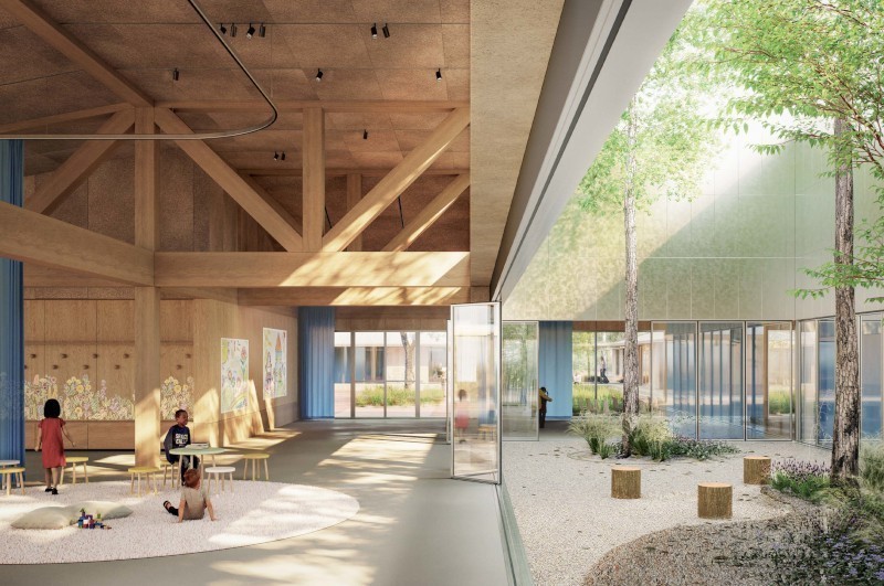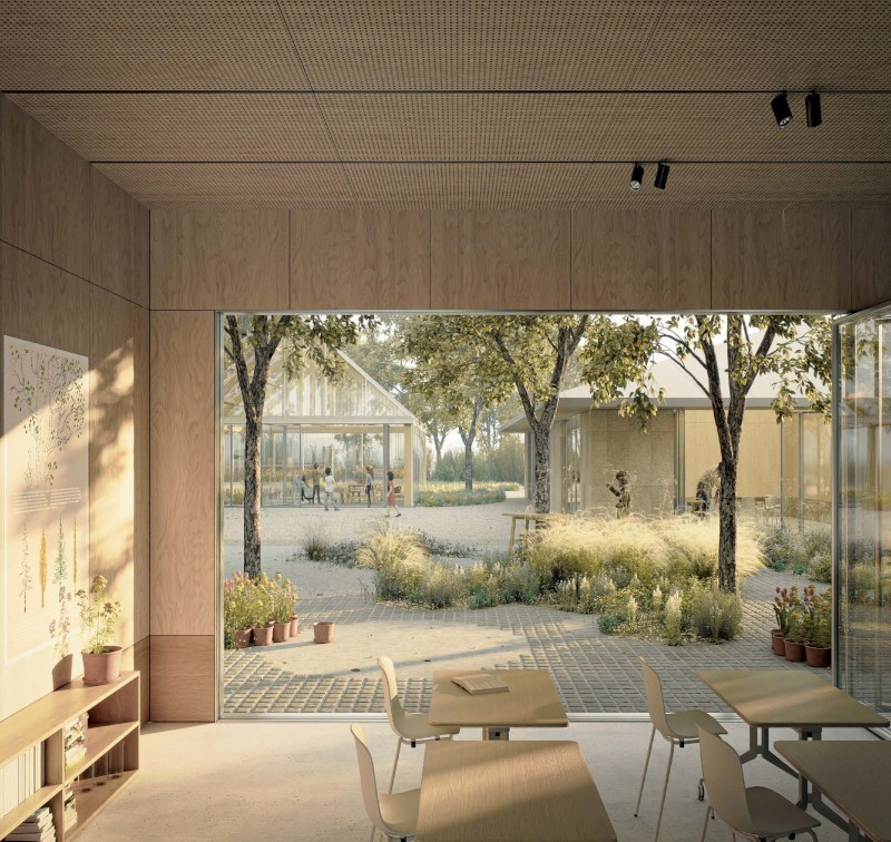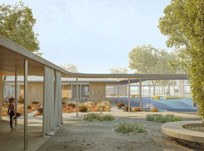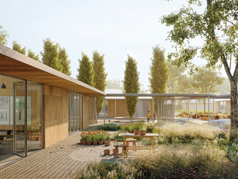 La scuola è essa stessa un paesaggio naturale a servizio non solo della comunità scolastica, ma di tutta la cittadinanza. «Gli edifici scolastici - spiegano i progettisti -, pur distinti per funzioni, sono tra loro connessi da percorsi coperti che trasformano gli spazi aperti in vere e proprie "stanze di paesaggio". La didattica si diffonde oltre i confini dell'aula tradizionale: i cortili, gli orti, i laboratori all'aperto e le agorà diventano dispositivi educativi che stimolano la socialità, la sperimentazione e l'apprendimento immersivo. La scuola giardino, in questa prospettiva, non è solo luogo di trasmissione del sapere, ma strumento di educazione al paesaggio e alla cittadinanza».